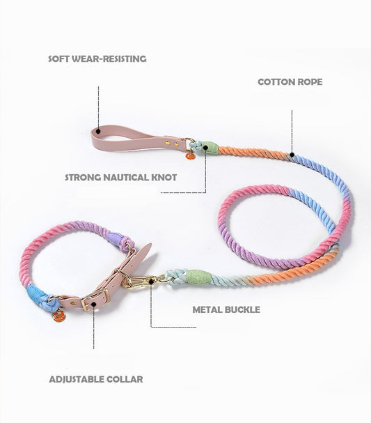 Dog Handcrafted Colourful Leash and Collar set, 2 Colours Available